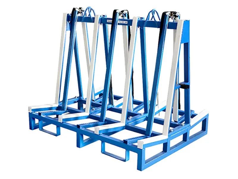 It is ideal for transporting and storing material within the factory or transporting material to building sites. Rubber-topped frame surfaces for maximum protection. Fits inside a standard pick-up truck. Frames can be safely placed on your truck with a forklift or crane.